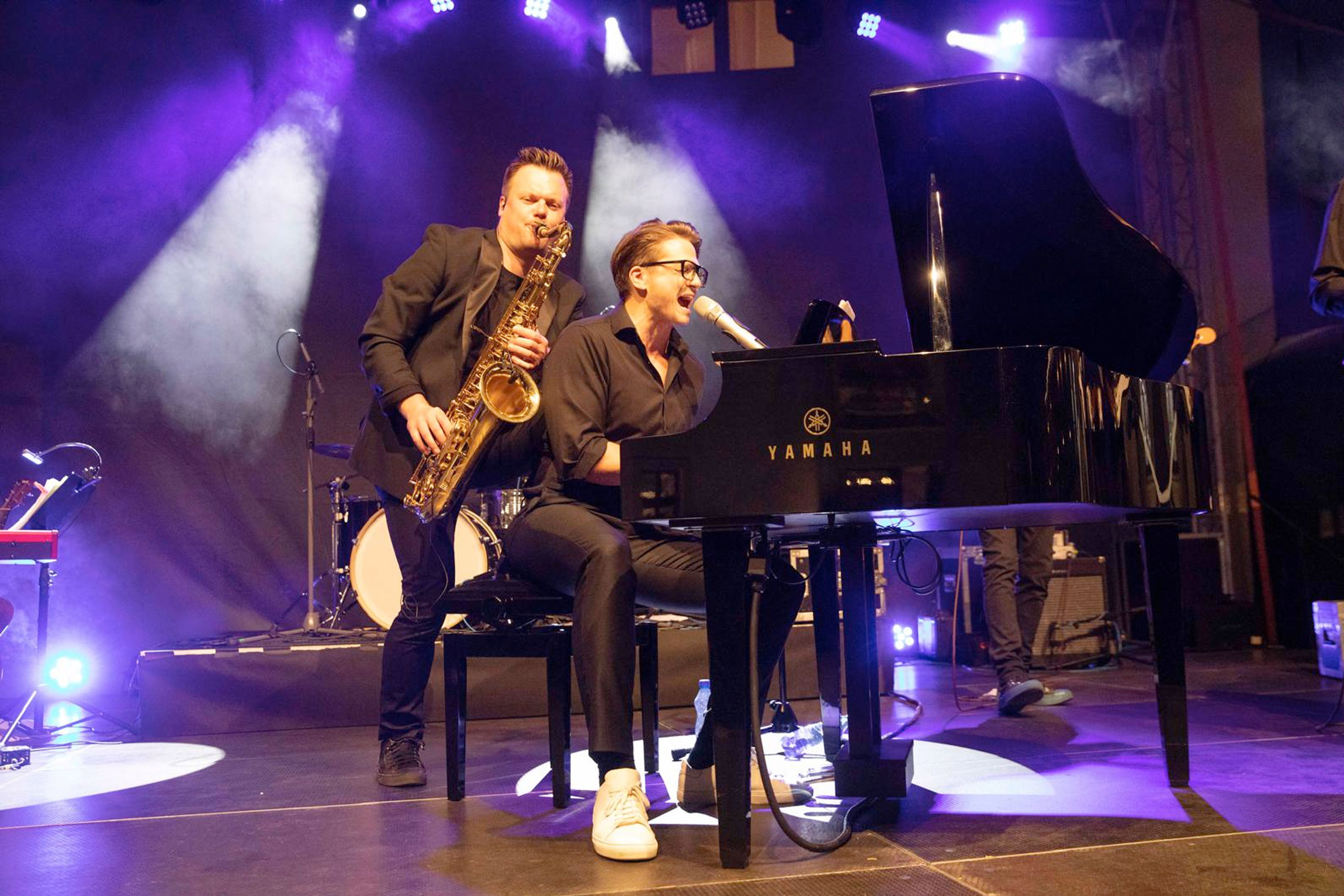 Duo Ondřej Brzobohatý (klavír, zpěv) a Matouš Kobylka (saxofon, EWI) přináší na pódium jedinečné hudební spojení, které propojuje prvky jazzu, popu, klasiky i moderní elektroniky. Brzobohatý, známý svou výjimečnou muzikálností a charismatem, mistrně ovládá klavír a zpěv, zatímco Kobylka dodává zvuku hloubku a dynamiku svými virtuózními sóly na saxofon a inovativním použitím elektronického dechového nástroje EWI.